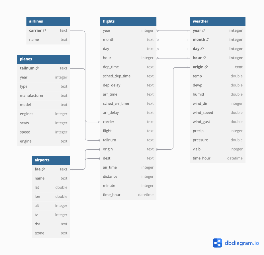 ER Diagram แสดง relationship ของ NYCflights23 dataset