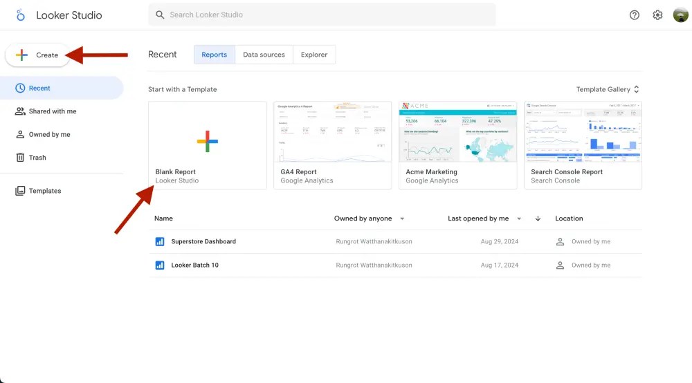 ขั้นตอนแรกให้เราไปที่เว็บไซต์ https://lookerstudio.google.com/