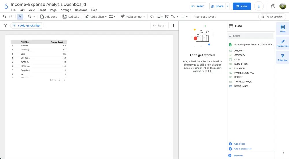 สังเกตว่า การสร้าง dashboard ใน Looker Studio จะลดขั้นตอนในการสร้าง pivot table ก่อนที่จะสร้าง chart เลย แต่ถ้าอยากเปลี่ยน chart เป็น table ก็เลือกได้จากโซนสีน้ำเงิน