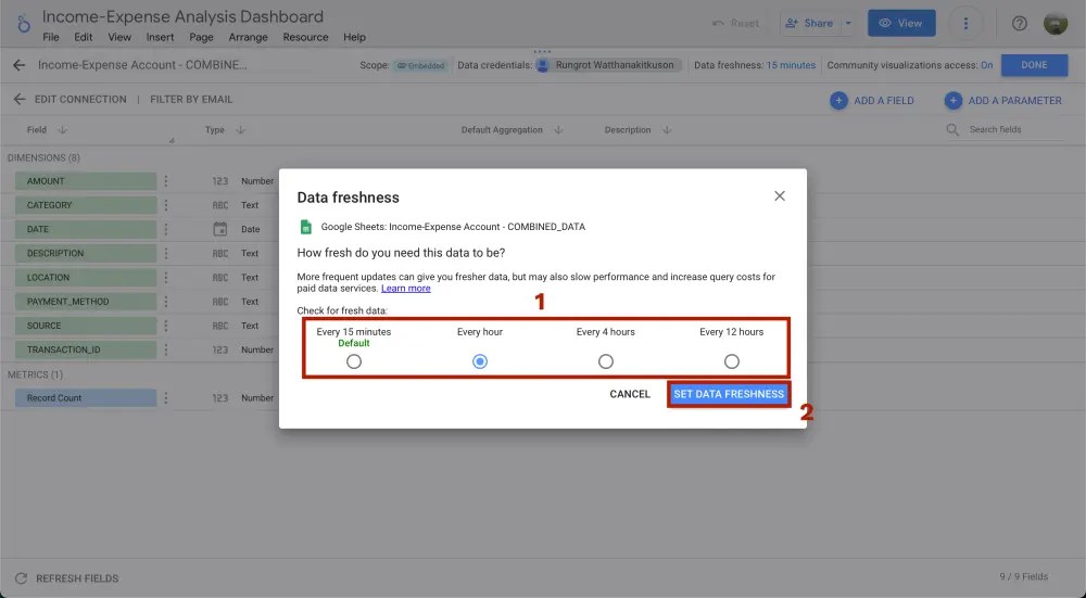 แล้วเลือกได้เลยว่าอยากจะให้ data ใน dashboard อัพเดททุกๆกี่นาทีกี่ชั่วโมง โดย default จะเป็นทุกๆ 15 นาที